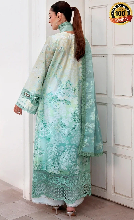 • Digital printed back 1 pc green printed lawn