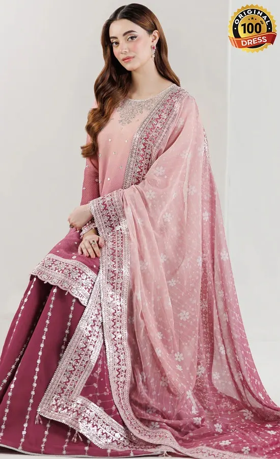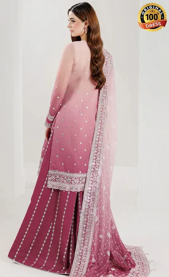 Buy Farasha PK Embroidered Chiffon Rosette Blush Dress Now!