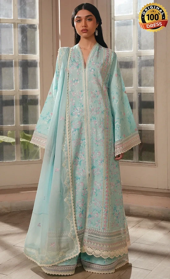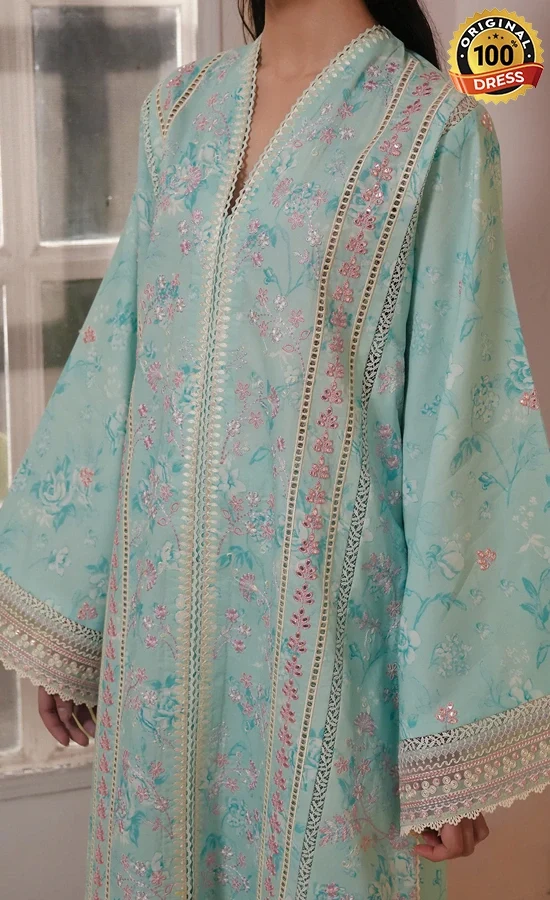 • Printed lawn sky blue digital printed embroidered sleeves 2 pcs