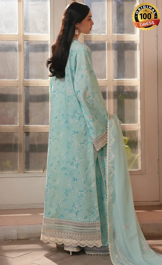 • Printed lawn sky blue digital printed back 1 m