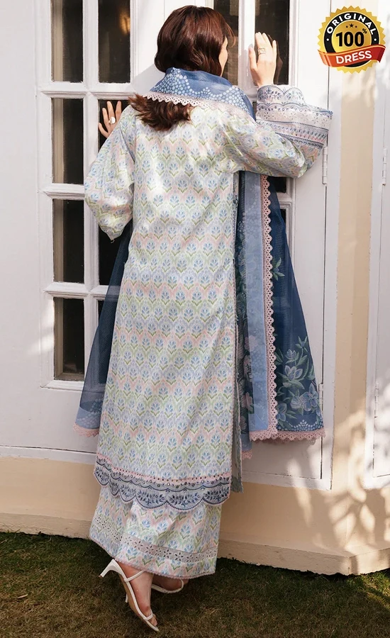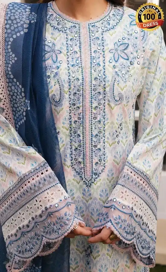 - Printed lawn off white digital printed embroidered front center panel 1 pc