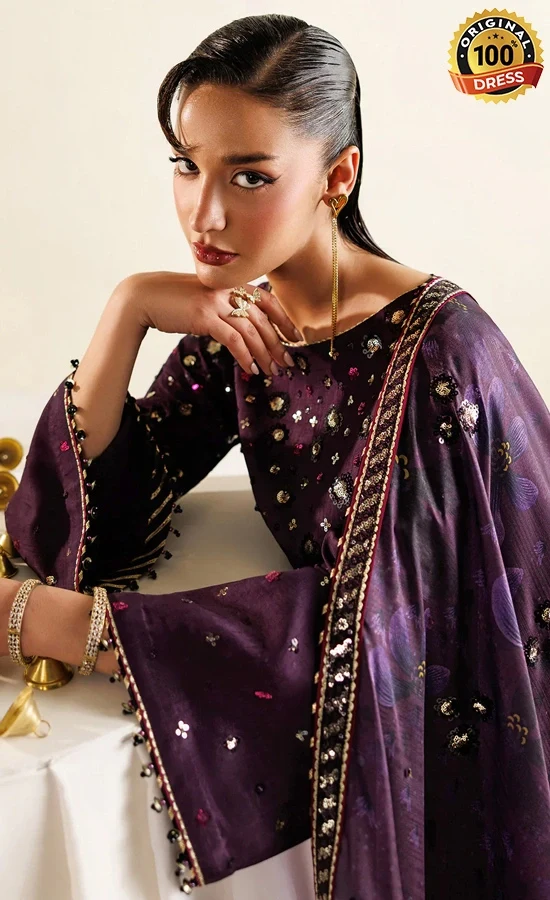 Buy Jazmin Embroidered Raw Silk UR-7063 Dress Now!